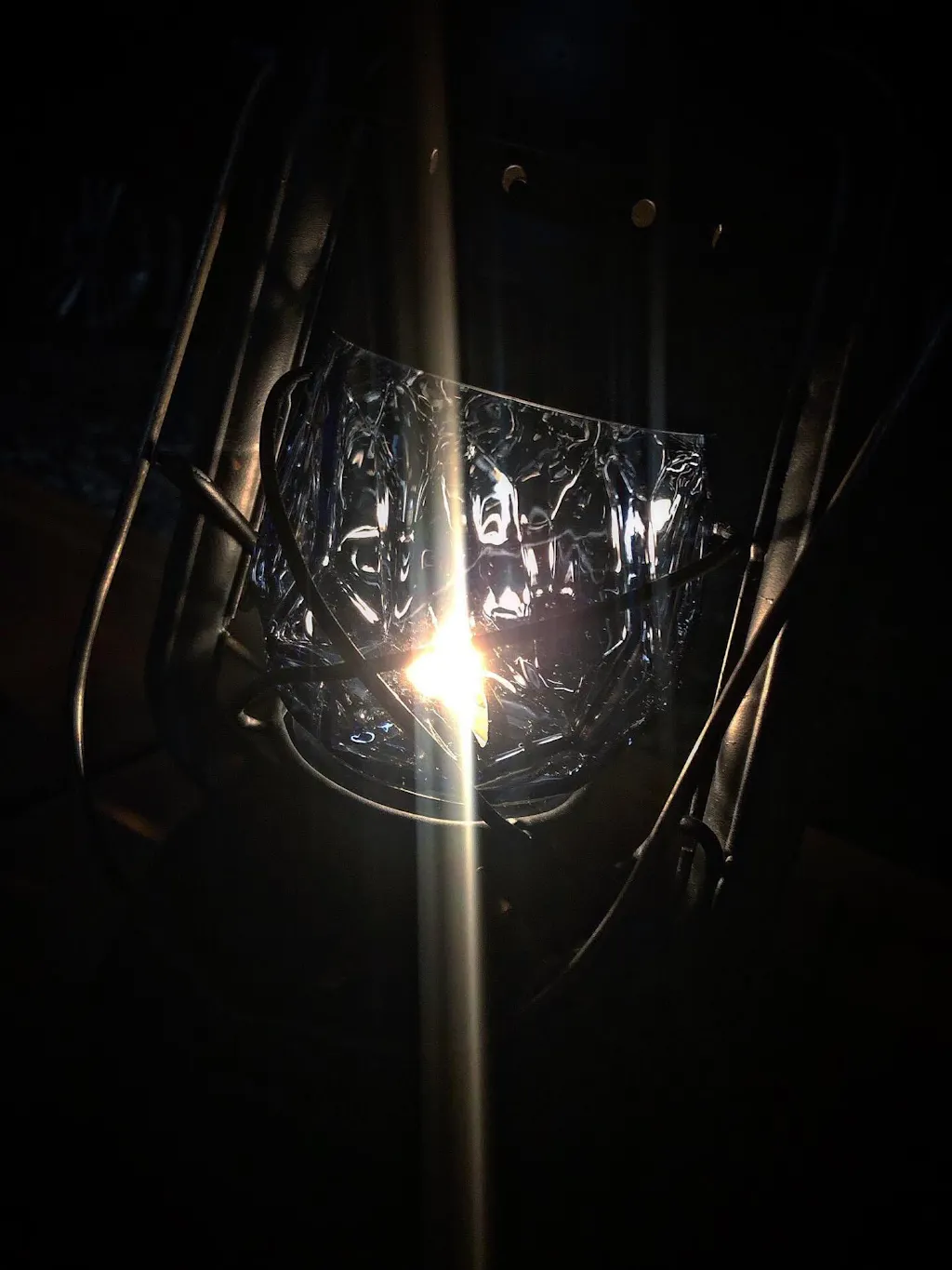 火を灯した瞬間、そこには砕かれた氷のような、幻想的な光の彫刻が現れます。